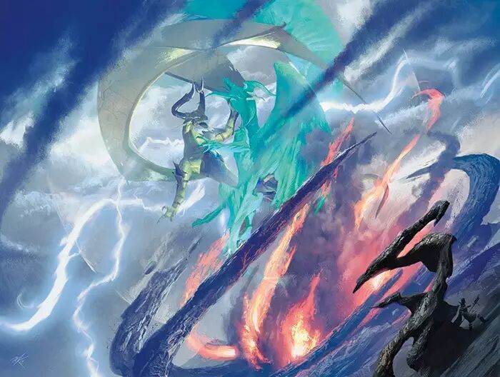在高空中映襯著她的,是展現了新生命力的巨龍風暴。新的巨龍從裡面誕生,用簡單又不受拘束的生命榮光嘶吼著。