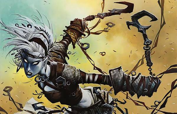 妮莎將每一分能量都注入了元素之中,並且當它擠壓著奧札奇的時候,她把自己過去所承受的痛苦也跟著一起壓碎。妮莎咬緊牙關。她不允許這類生物存在。她不會在這世界裡當一個旁觀者─甚至在任何一個世界。贊迪卡流入了她的生命而且它的力量使她的意志力更加集中。奧札奇掙扎並不停抓著這個源自大地的巨像,但元素只是更用力地握住。大地又傳來雷鳴般地聲響,妮莎召喚了兩個元素現身。這些高聳的巨獸逼近了不停扭動的奧札奇,它突然發出了一串斷斷續續的聲音,劃破了空氣。但隨著另兩個元素巨獸將夷徑者捶打成了一團扭曲又無法辨識的肉塊,它的聲音很快地中止了。