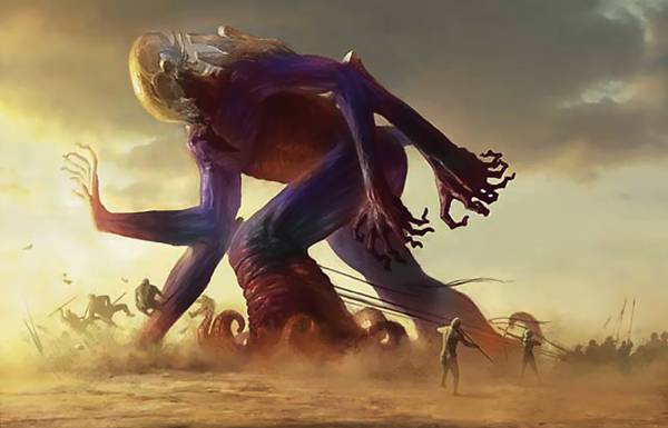 十位旅者被拉倒在地上。當夷徑者朝空中掀起了一塊巨大的土地時,有些人還被拋向了地面。其他人則是目瞪口呆地站在原地。有的人驚慌失措地逃跑。就在任何人能夠反應之前,夷徑者已經抓住了一些探險隊成員然後將他們壓扁在它觸手般的手底下。