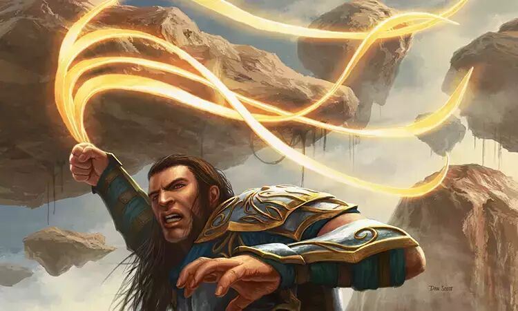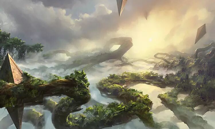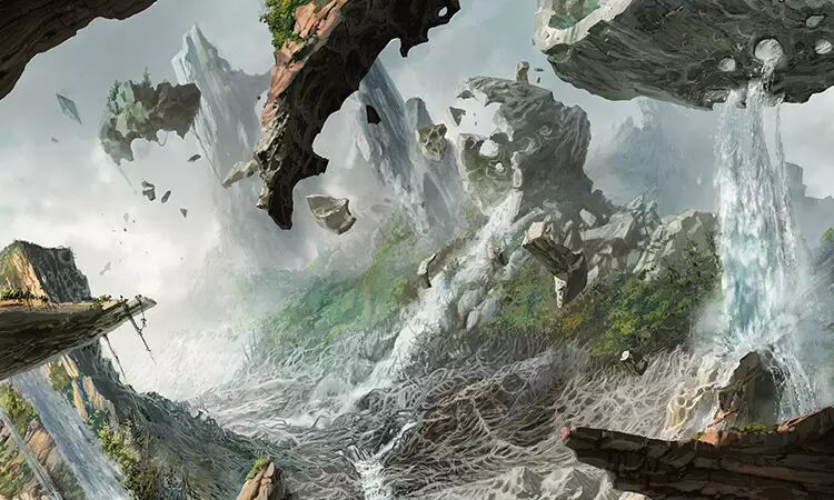 「支撐好!」基定下了指令。基定利用他預先保留起來的力量並將自己牢牢地固定在晶石上;他變得如同贊迪卡最濃密的樹林般難以撼動。其他人則抓緊繩索並固定好自己,同時阿碧娜正在把另一條帶有厚重鉤爪的繩索拋向了第三顆漂浮的岩石。