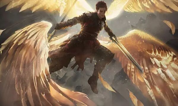 塔茲莉舉起她的劍。天使的光暈發出熾熱的白光,一道眩目、熊熊燃燒的光芒,接著塔茲莉在腦袋裡聽見一道悅耳的聲音,儘管她聽不出它的內容。然後光暈變得昏暗,接著光芒熄滅。她腦中的聲音也突然停止。