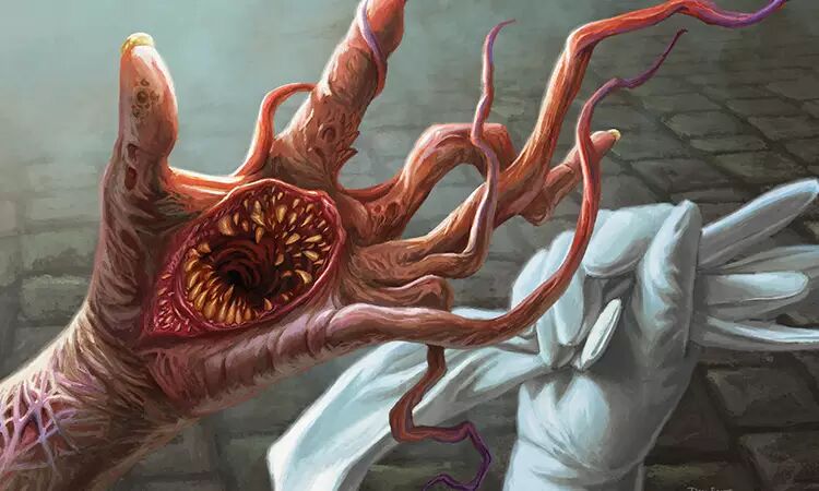 多美代不能用雙眼和雙手,但她一直細語著,雖然沒有發出聲音。多肉的捲鬚開始纏住她的嘴,伊莫庫的網把她的兩片嘴唇牢牢的貼在一起。即便她的嘴停了下來,格柵卻持續生長,扭曲蠕動著。捲鬚從她閉著的嘴遠遠延伸,現在,隨著鮮血持續從她的雙眼滴下,捲鬚抓住了一滴,圍繞著它蜷曲起來,隨著鮮血滲進它那多油的皮膚而不斷扭動。噼-扭。噼-扭。噼-扭。