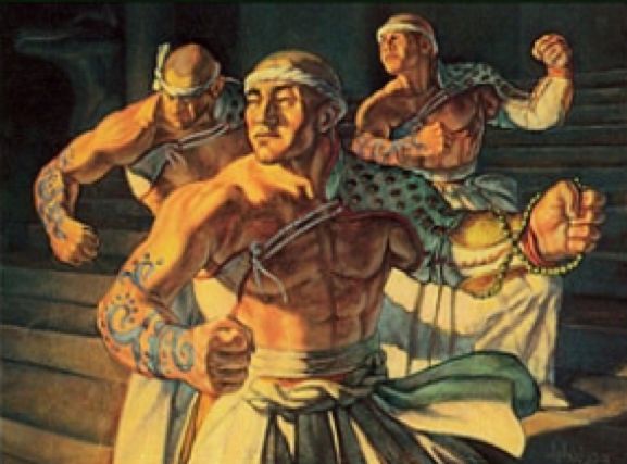 一树一直拥有着全寺最强健的体魄。也正因如此,禄庵大师将他视作承担鸣钟之职的不二人选,自开战之日起,一树便尽心竭力,从未负过师傅的嘱托。多年的劳苦使他的肌腱愈加发达。但凭那宽展的肩膀和厚实的背脊就足以令他显得卓尔不群。再配有神龙之赐,浑身闪耀着绿色辉光的一树就宛若一轮烈日,仅瞥上一眼都会感到双目刺痛。